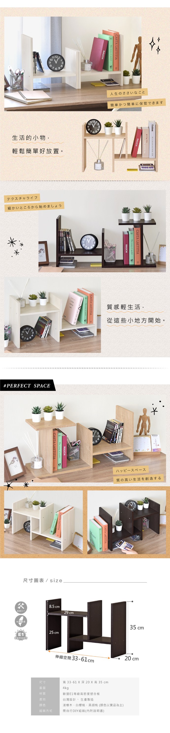 《HOPMA》多功能桌上型伸縮書架(2組) 台灣製造 電腦架 主機架 螢幕增高架 展示架-白櫻桃