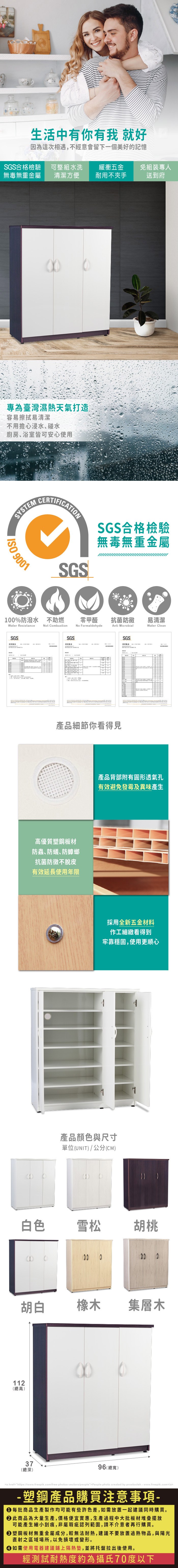 點我下載ASSARI-防潮防蛀塑鋼緩衝三門鞋櫃(寬96x深37x高112cm)雪松