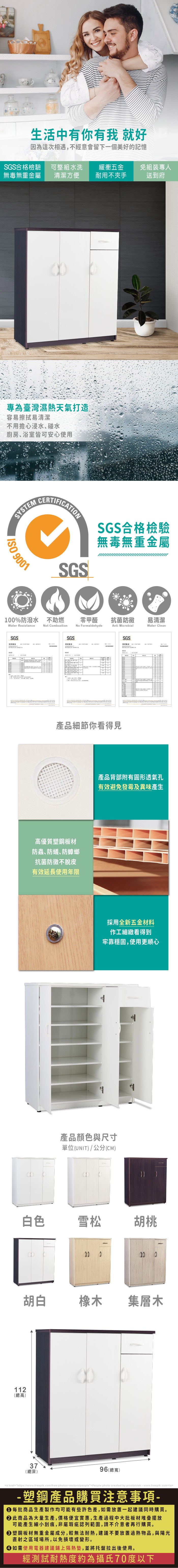 點我下載ASSARI-防潮防蛀塑鋼緩衝三門一抽鞋櫃(寬96x深37x高112c雪松