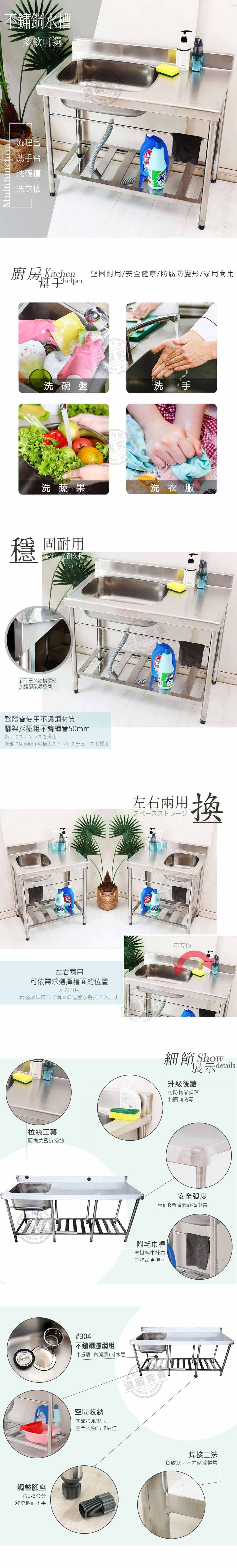 【Abis】頂級升級加牆款304不鏽鋼72CM洗台大水槽(2.4尺)