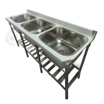 【Abis】加牆款304不鏽鋼三洗台水槽(180公分/6尺)-1入