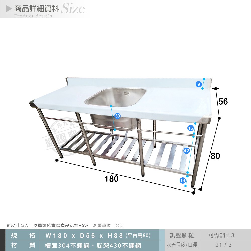 客製商品-【Abis】升級加牆款304不鏽鋼100CM洗台+平台中提籠水槽(3.3尺)左槽