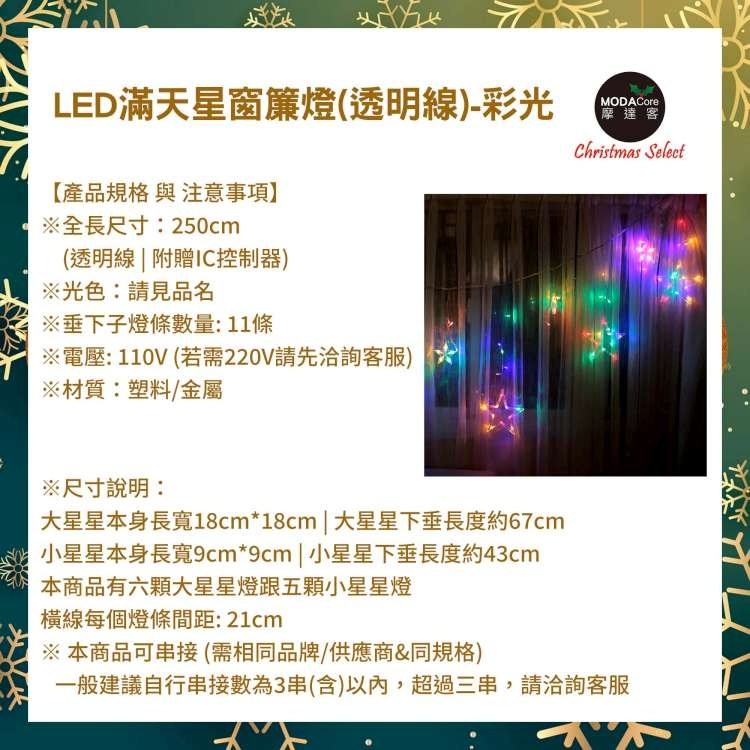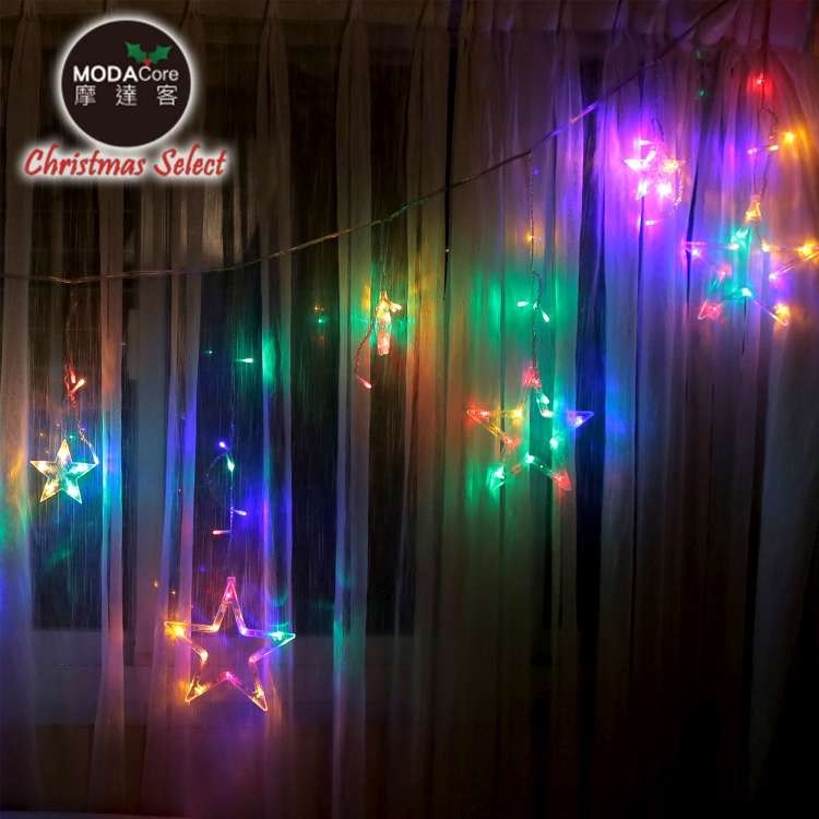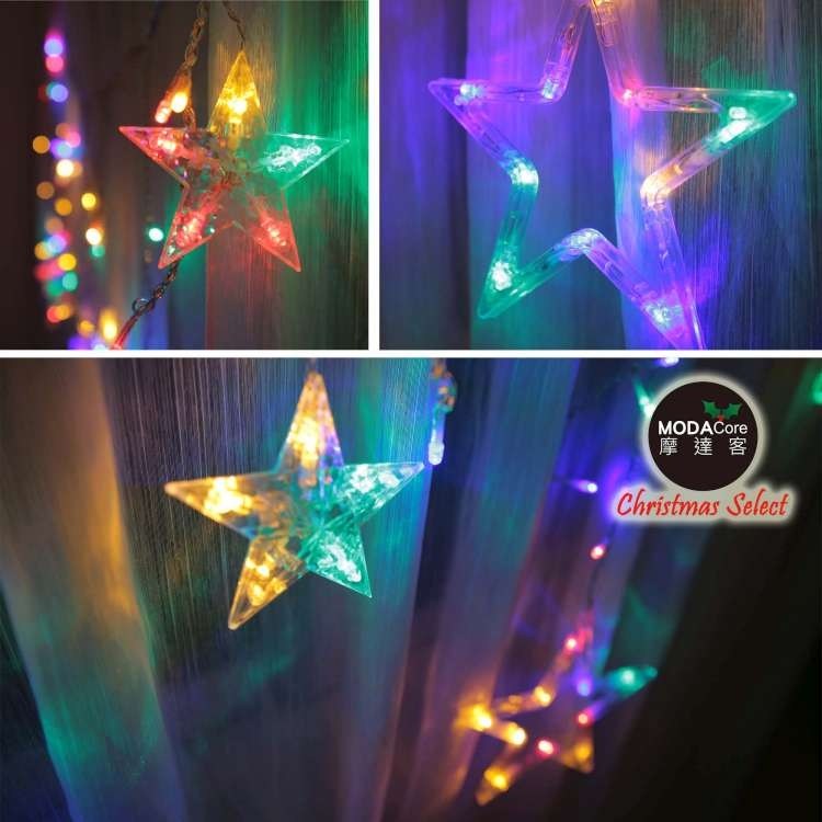 摩達客-LED燈造型滿天星星窗簾燈聖誕情境燈_彩色光透明線(附贈IC控制器)
