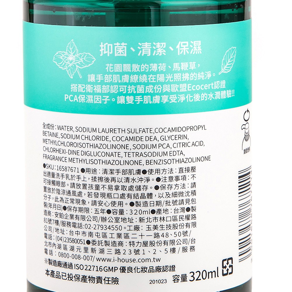 Home Zone 薄荷馬鞭草抑菌洗手露 320ml