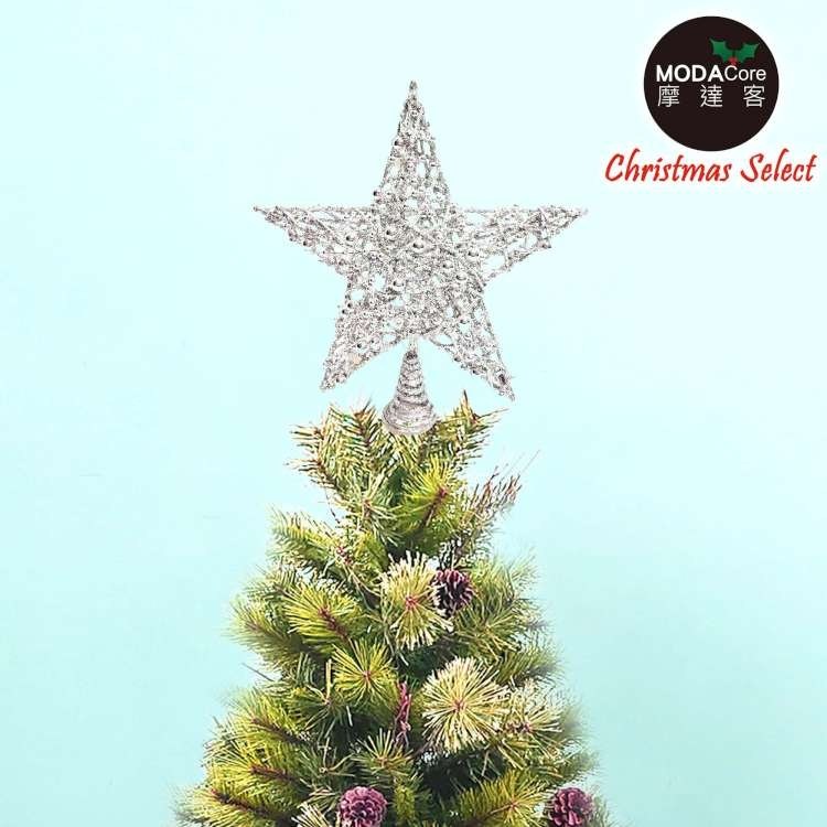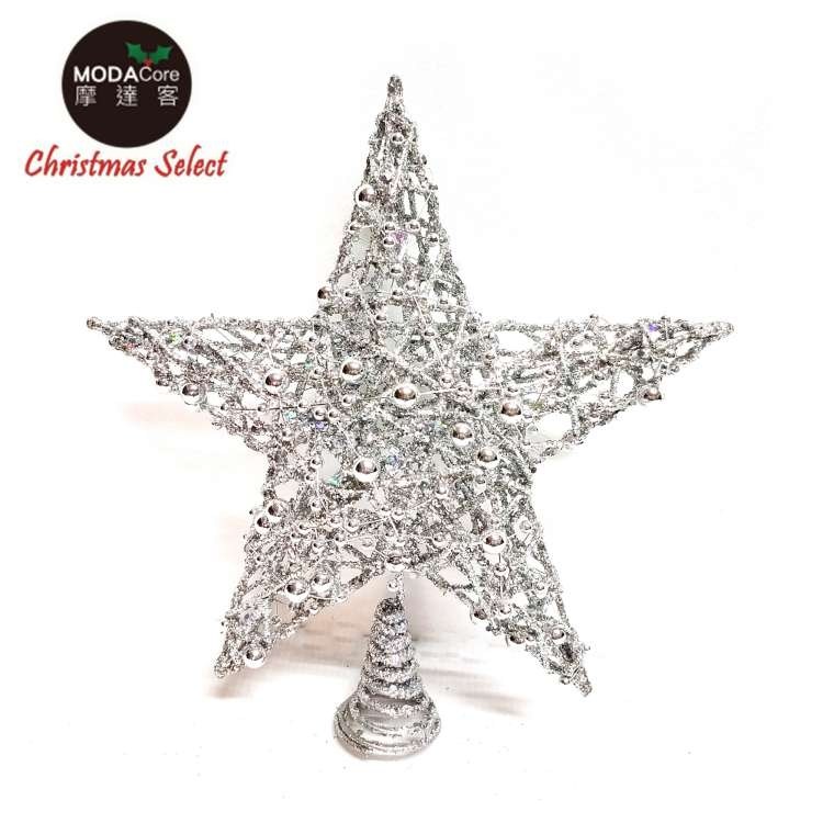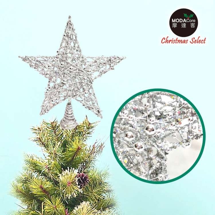 MODACore 摩達客 - 25公分珠珠鐵網立體樹頂星(銀色)擺飾