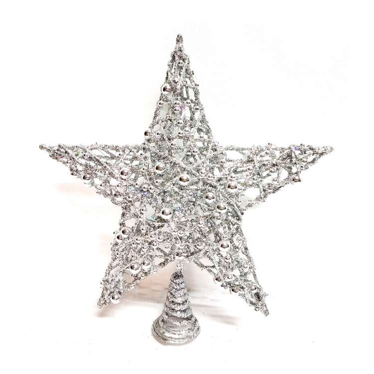 MODACore 摩達客 25公分珠珠鐵網立體樹頂星擺飾 聖誕樹裝飾 24 x 23 x 7cm 銀色 1件