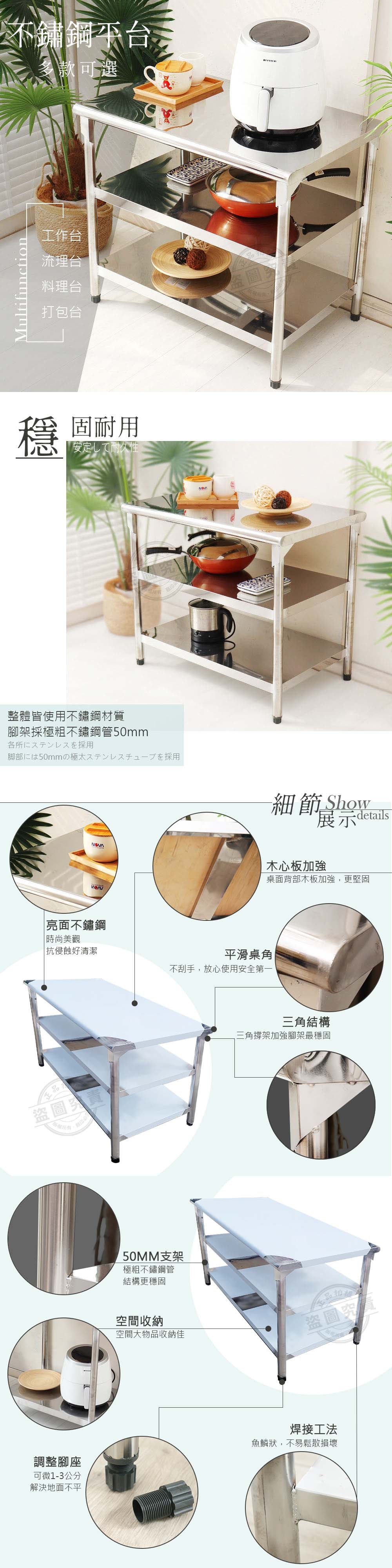 【Abis】升級版75x120CM三層圓角304不鏽鋼桌2.5尺X4尺