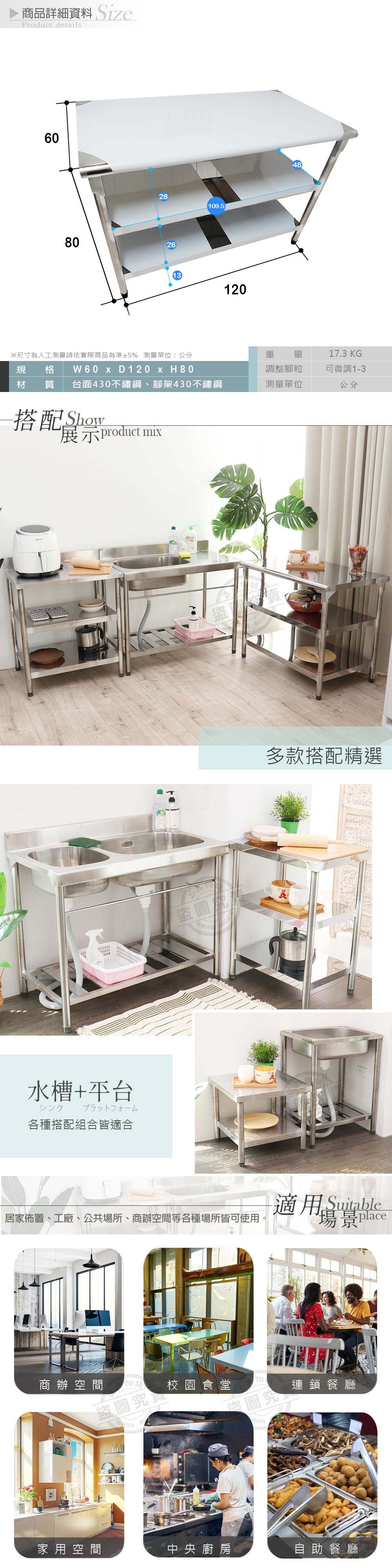 【Abis】升級版60x180CM三層圓角430不鏽鋼桌(2尺X6尺)