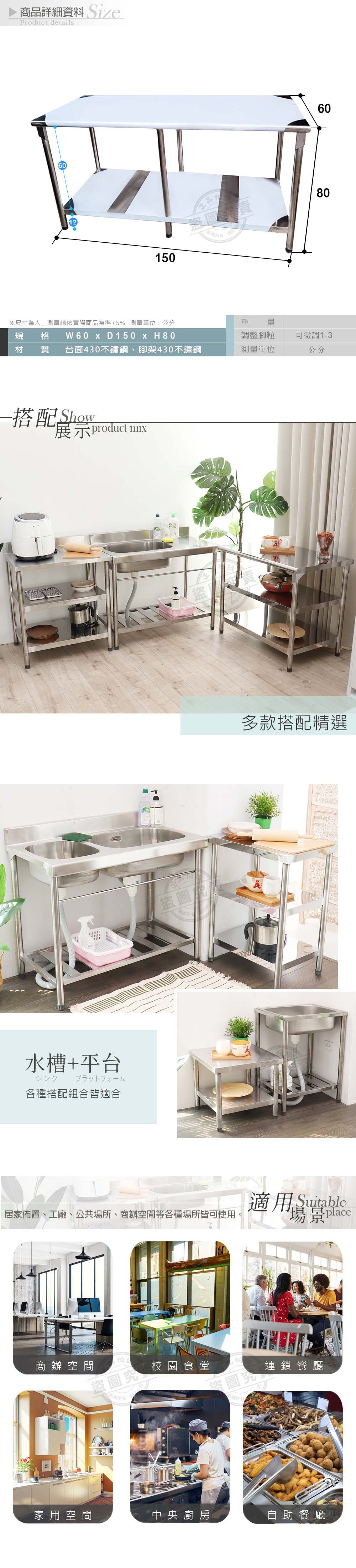 【Abis】升級版75x180CM二層圓角430不鏽鋼桌2.5尺X6尺
