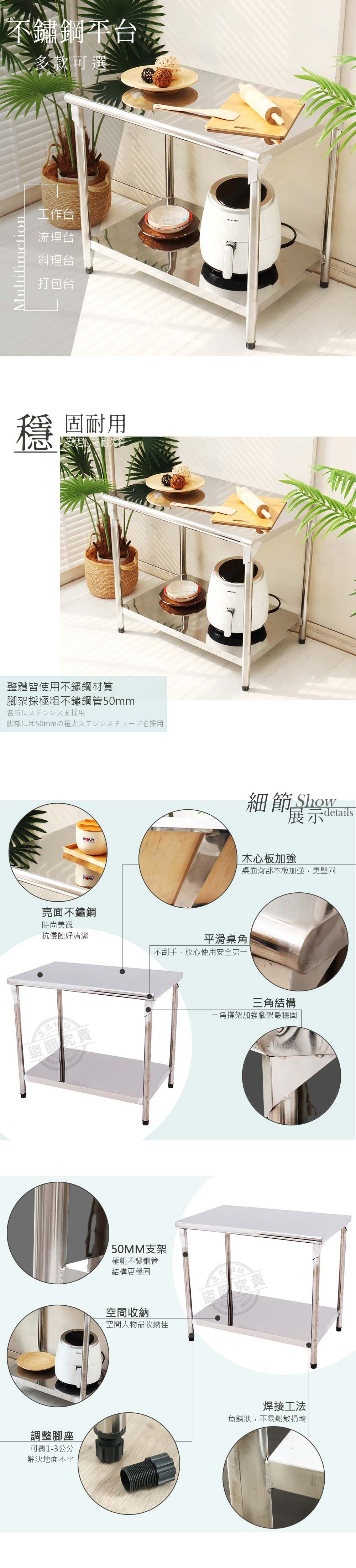 【Abis】客製商品-豪華升級版90X150CM二層圓角304不鏽鋼桌-附煞車輪/料理桌/工作台/流理台(3尺X5尺)