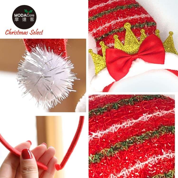 摩達客 耶誕派對 聖誕皇冠彎帽髮箍 時尚配件 紅色 1個