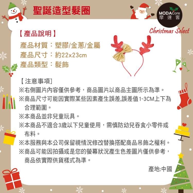 摩達客 耶誕派對質感蕾絲聖誕麋鹿造型髮箍 聖誕麋鹿 1個