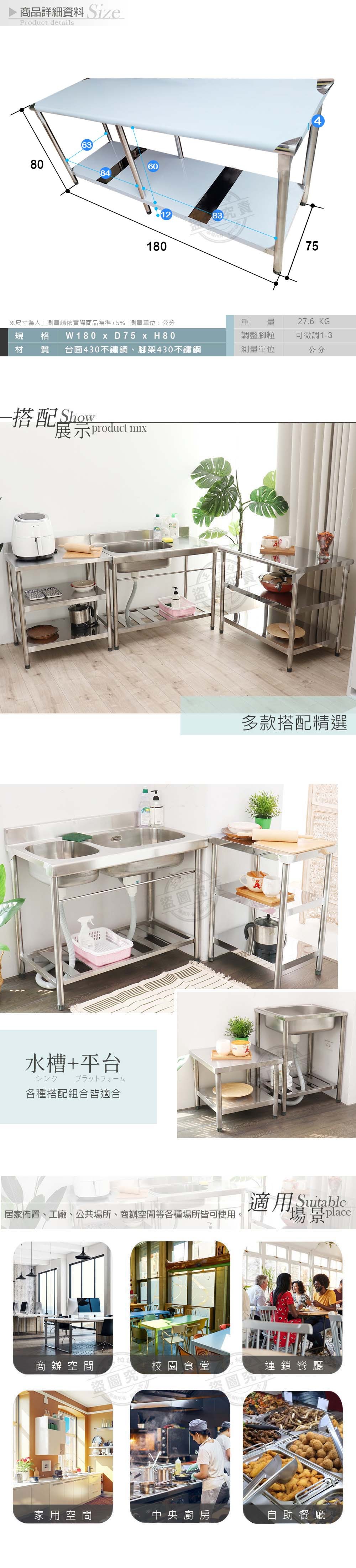 【Abis】升級版60x180CM三層圓角430不鏽鋼桌(2尺X6尺)