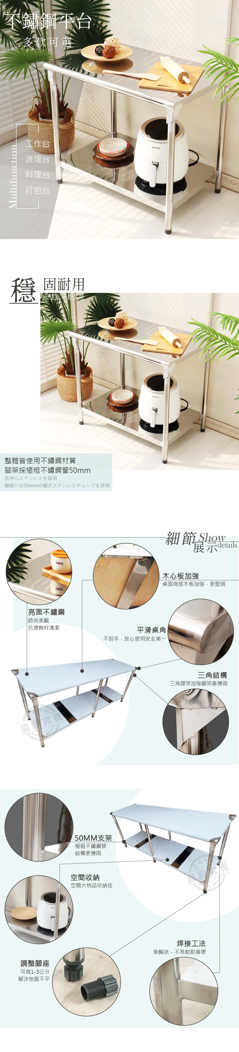 【Abis】升級版75x120CM三層圓角304不鏽鋼桌2.5尺X4尺