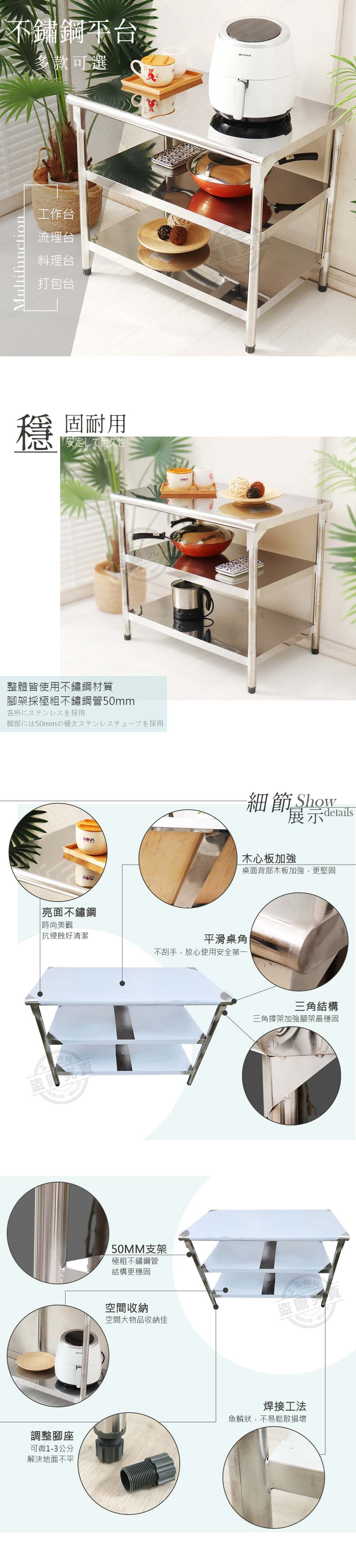 【Abis】升級版75x120CM三層圓角304不鏽鋼桌2.5尺X4尺