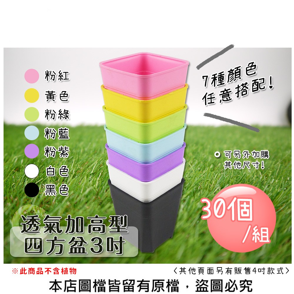 【蔬菜工坊】透氣加高型四方盆3吋(共7色可選) 30入/組