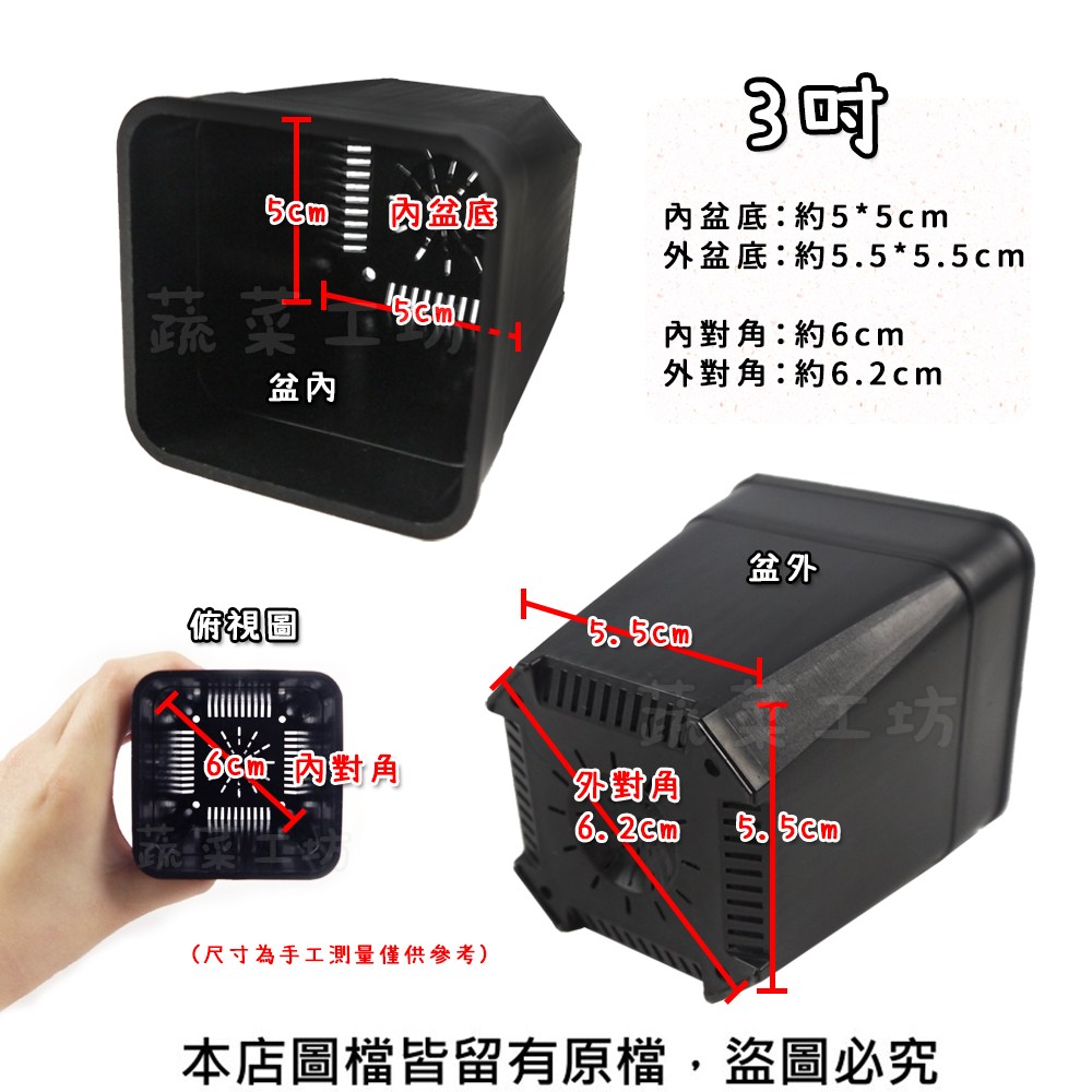 盆外約6.8*6.8cm 盆內約6.1*6.1cm 底部約5.3*5.3cm