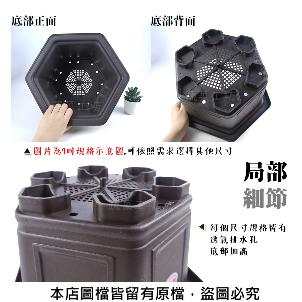 庭園景觀 六角造型盆栽,皆有透氣排水孔、底部加高。