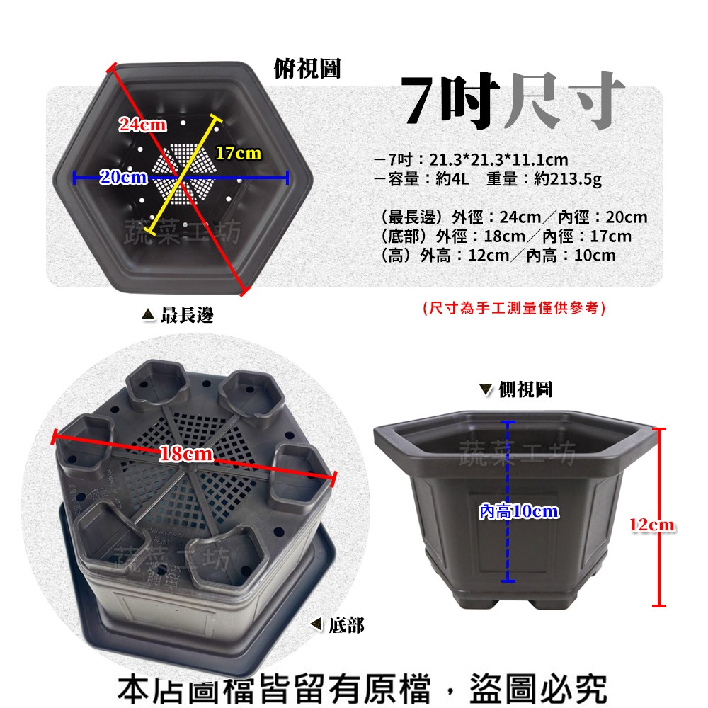 【蔬菜工坊】忠興六角花盆 7吋- 5個/組