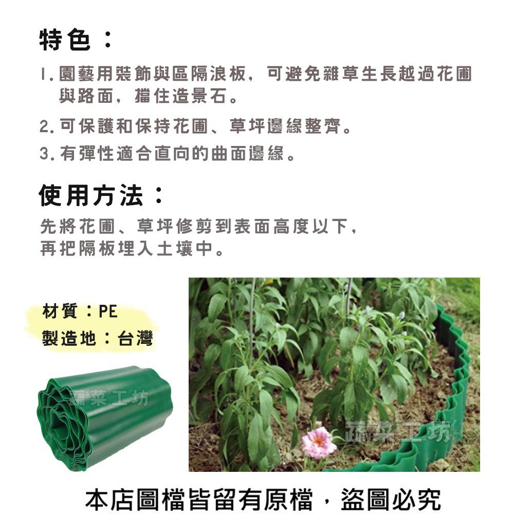 1.園藝用裝飾與區隔浪板, 可避免雜草生長越過花圃與路面, 擋住造景石