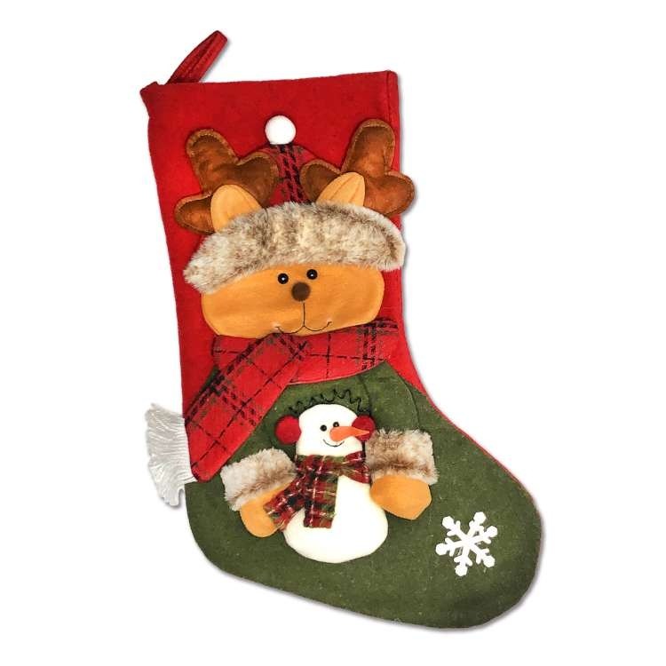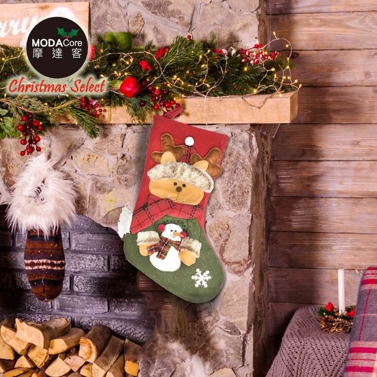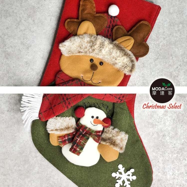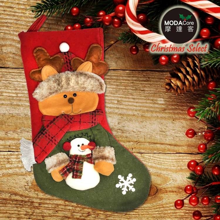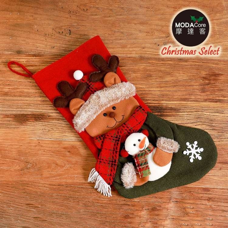 摩達客 麋鹿抱雪人聖誕襪 耶誕紅綠系 1個 30 x 48cm