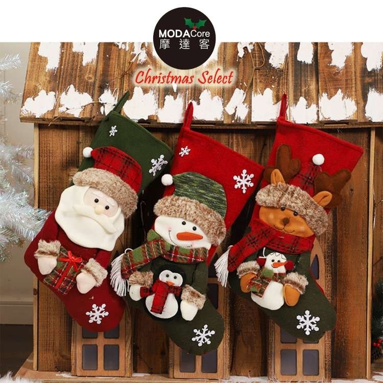 MODACore 摩達客 - 耶誕-紅綠系雪人抱企鵝聖誕襪