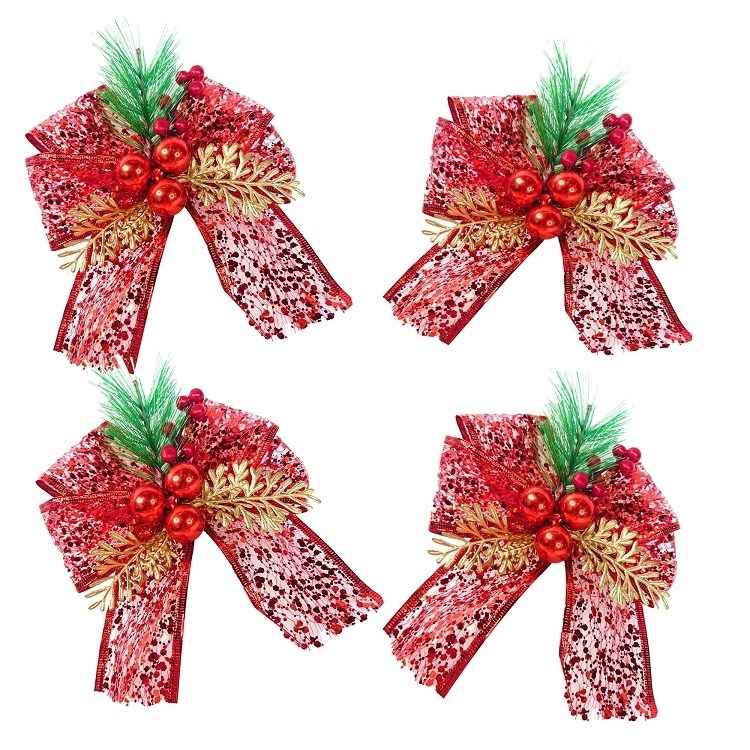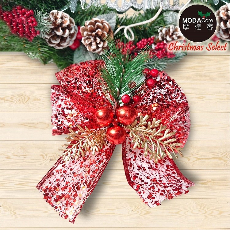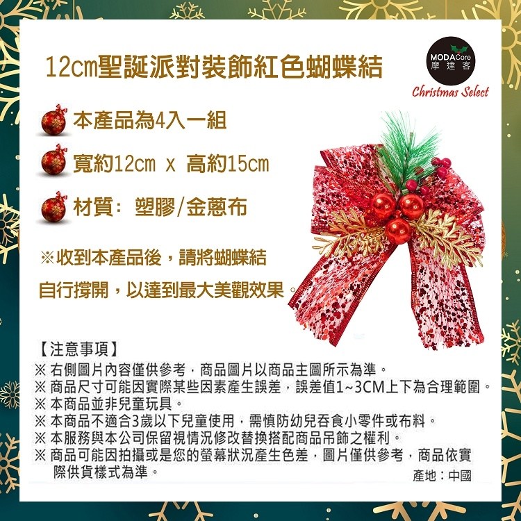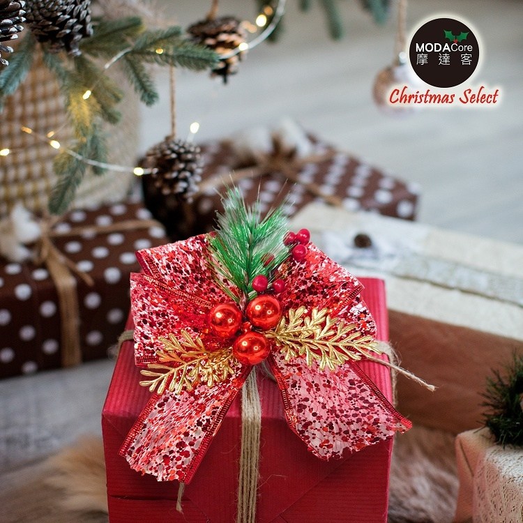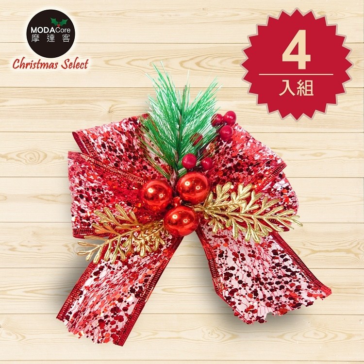 摩達客 聖誕派對裝飾紅色蝴蝶結 4入一組 紅色 1組 12cm x 15cm