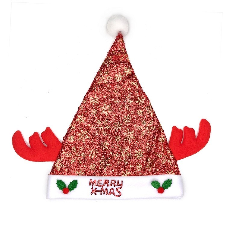 摩達客 耶誕派對閃亮銀雪花金蔥布棕色小牛角聖誕帽 成人款 紅色 + 棕色 1個