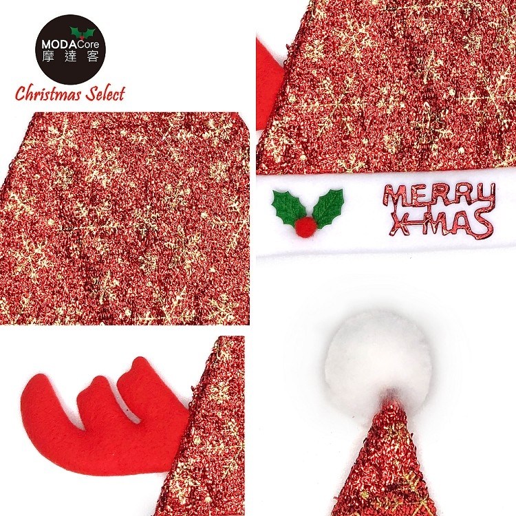 摩達客耶誕派對-閃亮金雪花金蔥布紅色小牛角聖誕帽