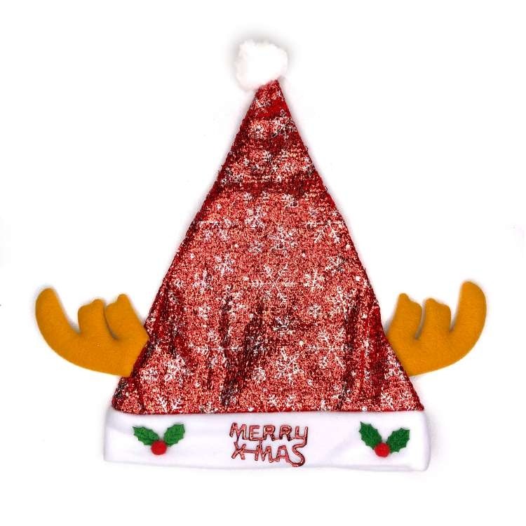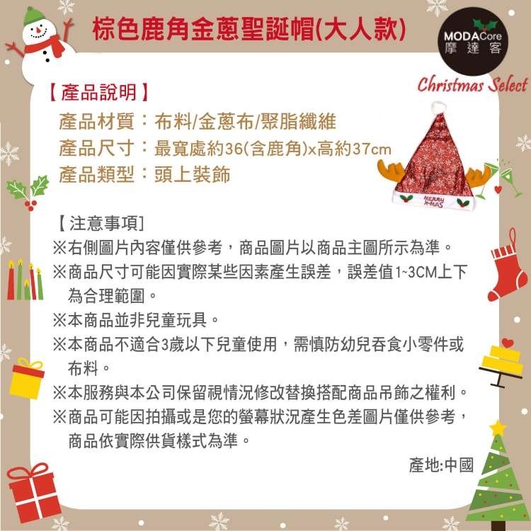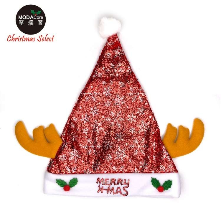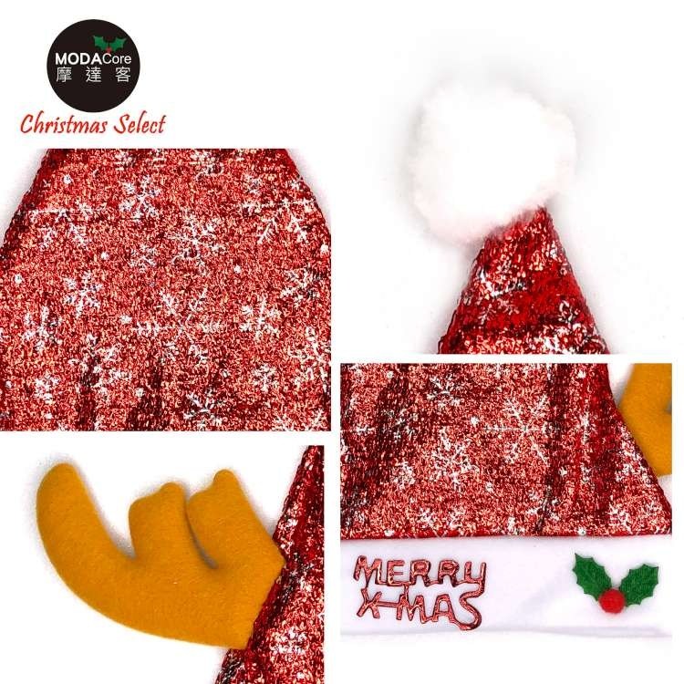 摩達客耶誕派對-閃亮銀雪花金蔥布棕色小牛角聖誕帽