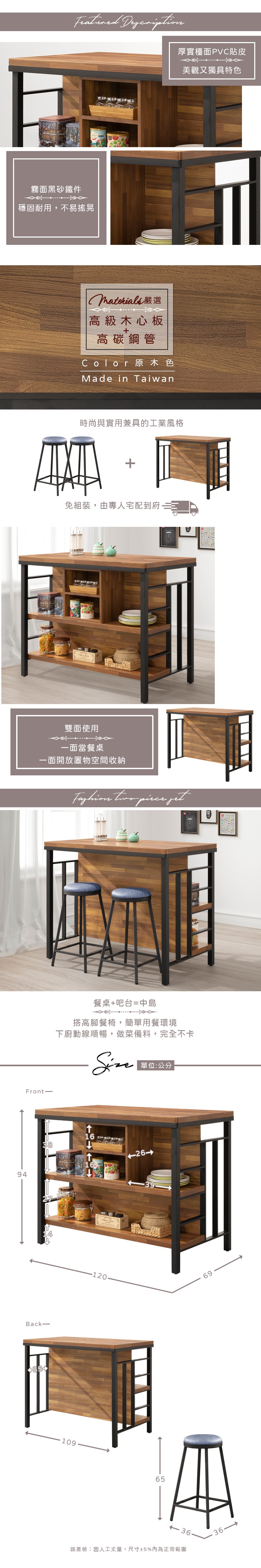 Homelike 喜家居多功能中島桌椅組(含二椅)(1723)