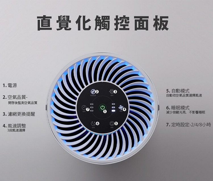 ◆ 藍、綠、橙、紅,四色情境燈號顯示目前空氣品質