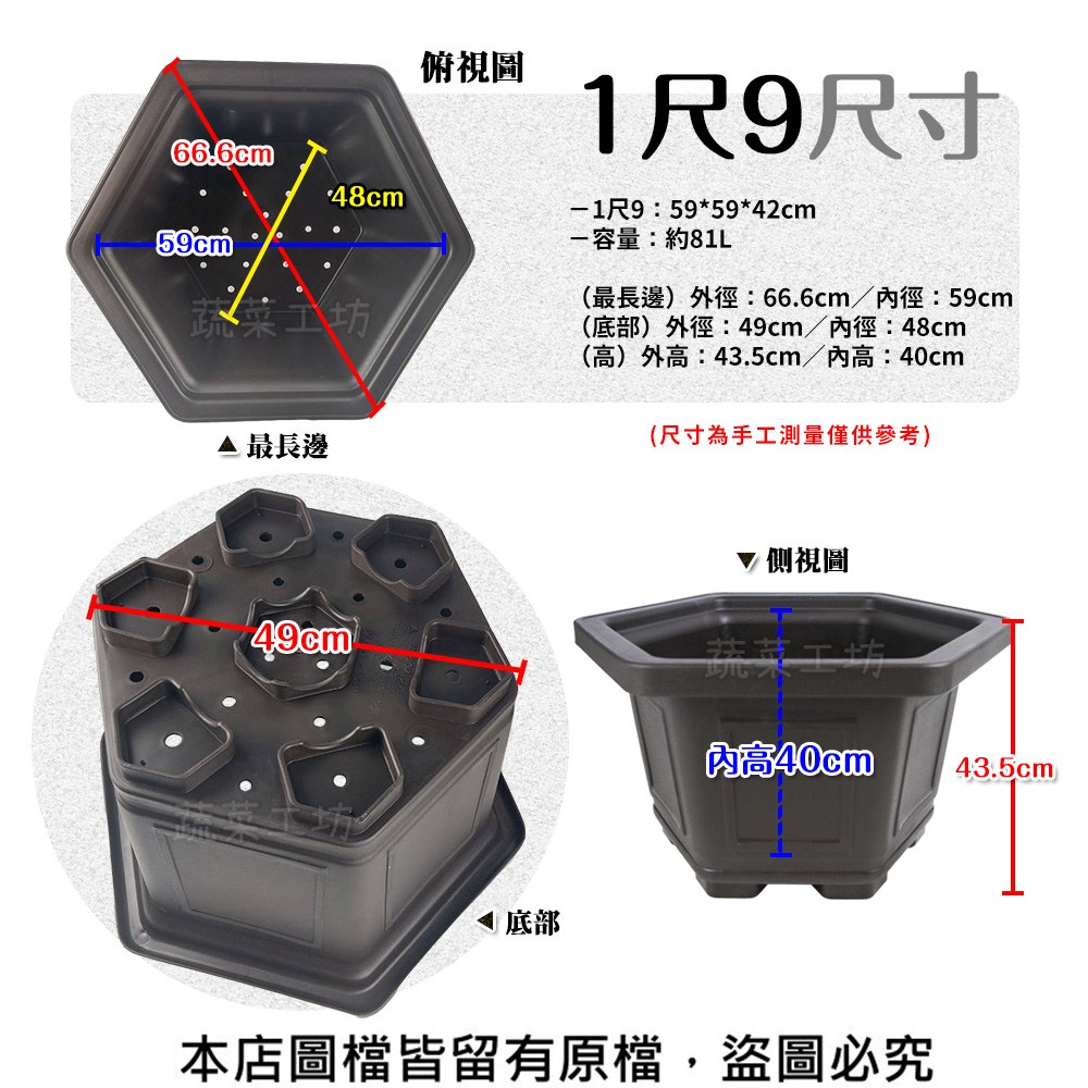 【蔬菜工坊】忠興六角花盆 1尺9