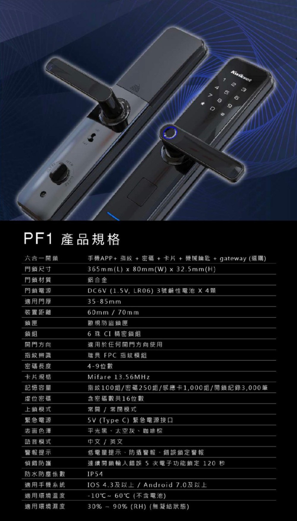 - 防撬破壞/錯誤開鎖輸入/低電量提示等多重智能警報功能