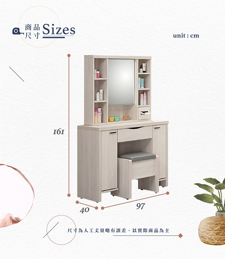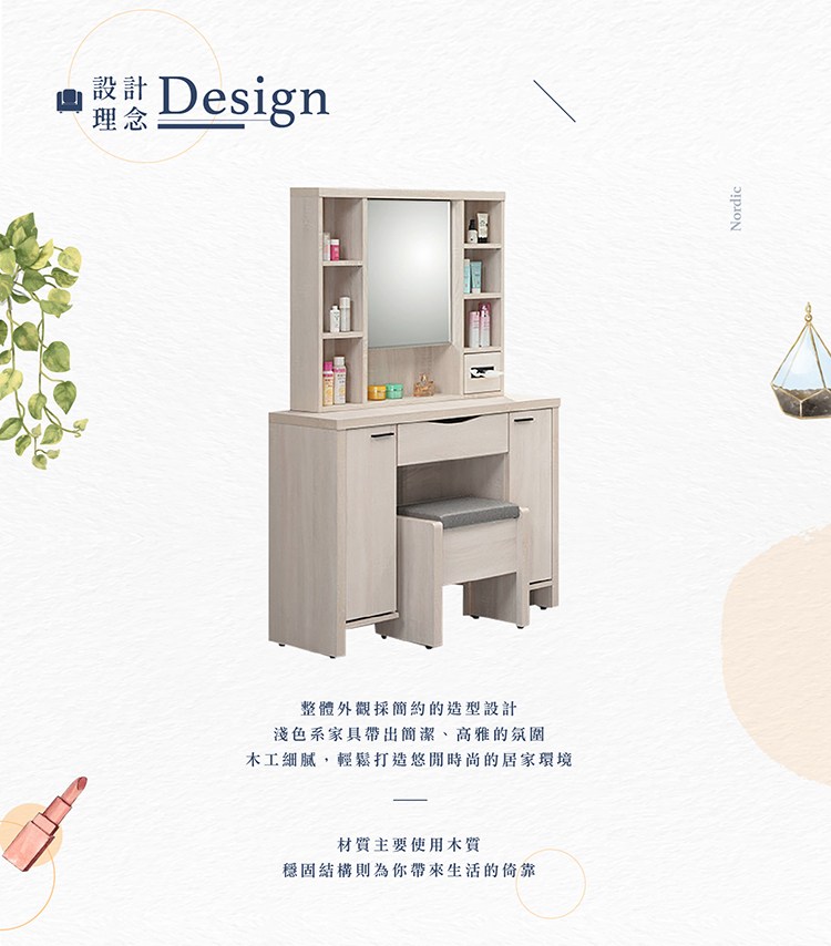 【歐風別館】麗寶白雲橡3尺鏡台【基隆至台中免運費】
