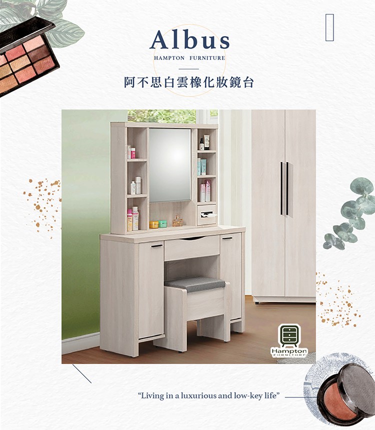 【Hampton 漢汀堡】阿不思白雲橡化妝鏡台