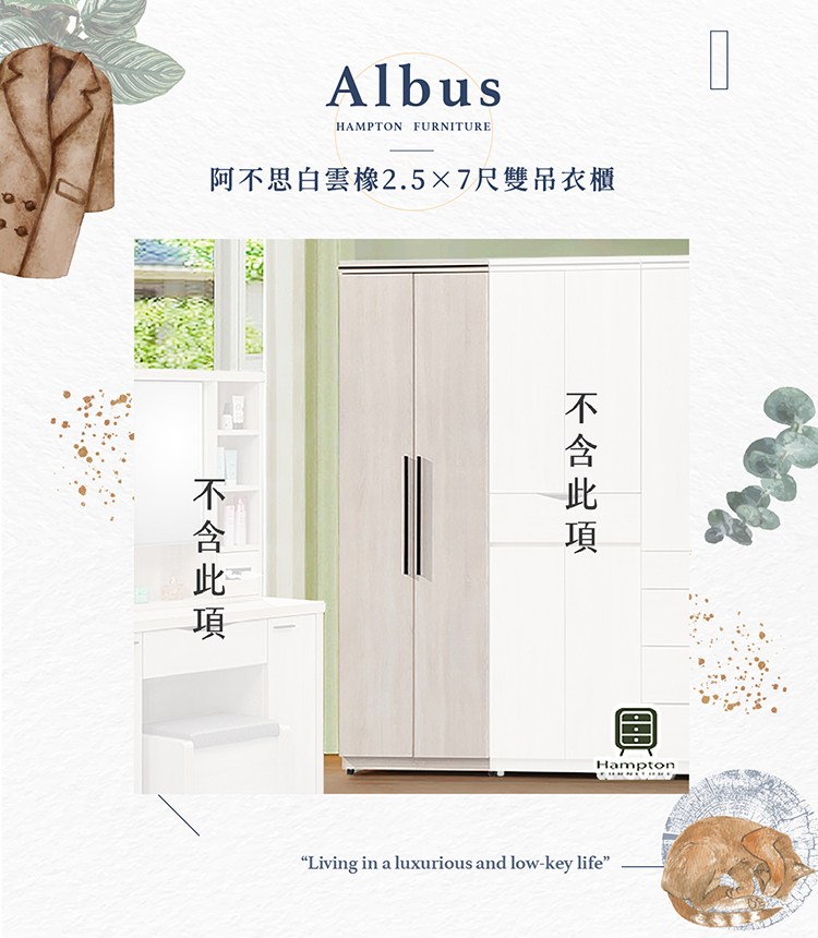 【Hampton 漢汀堡】阿不思白雲橡2.5×7尺中抽雙吊衣櫃