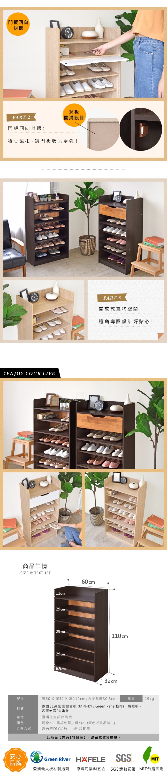 HOPMA家具 摩登三門五層鞋櫃 台灣製造 玄關收納櫃 置物邊櫃 鞋架-寬76 x深32 x高85.5cm;內徑深度30.5cm