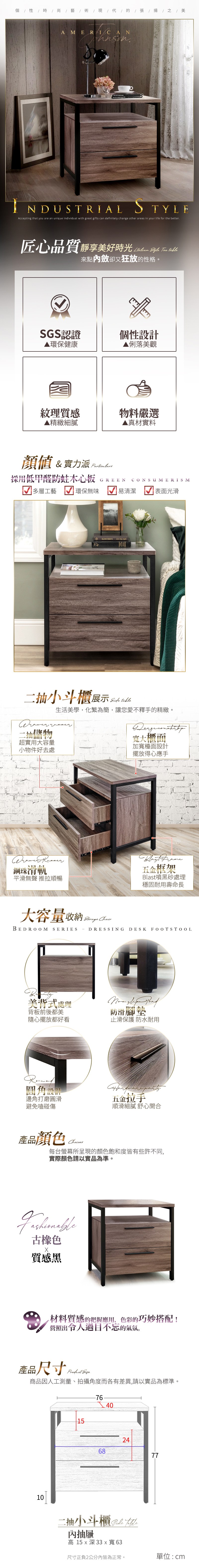 IHouse-強森 美式工業風2抽小斗櫃/收納櫃古橡