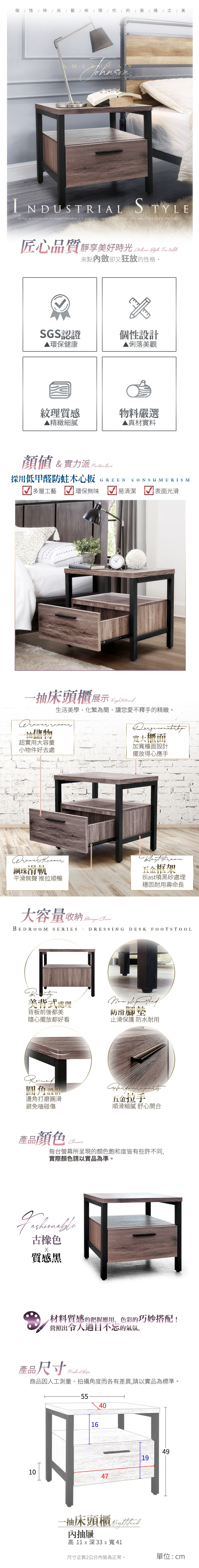 IHouse-強森 美式工業風1抽床頭櫃/收納櫃古橡