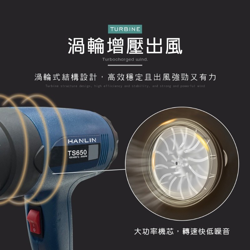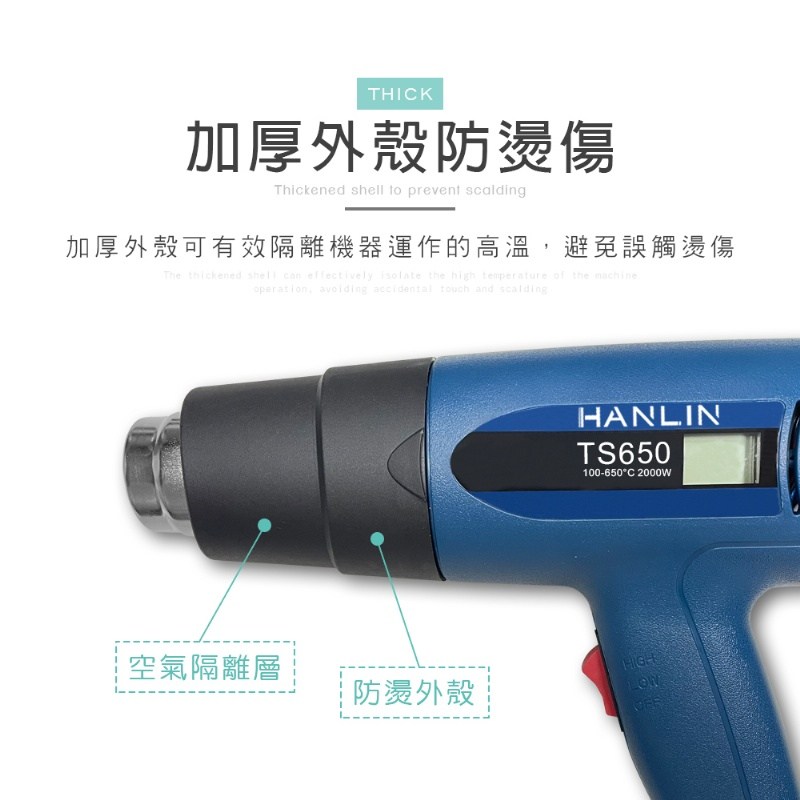 HANLIN 專業調溫側顯液晶熱風槍 TS650 2000W 110V 雙發熱絲設計 1個
