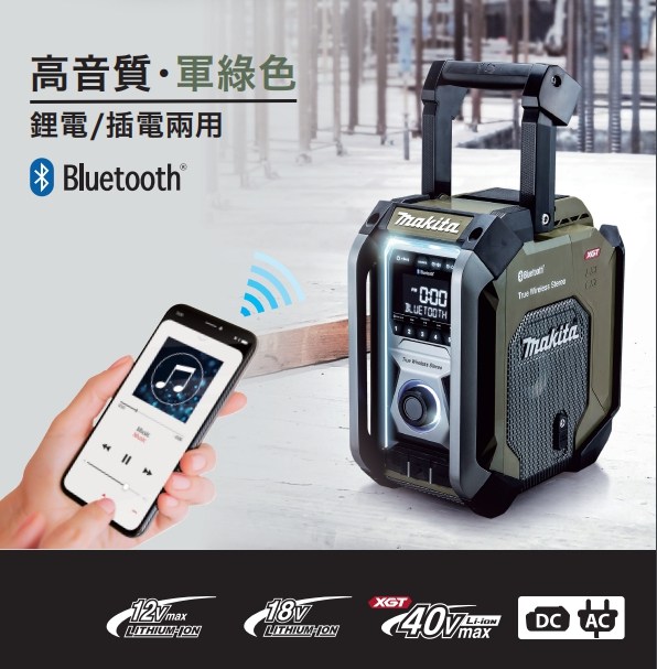 MAKITA牧田 MR006G 收音機-軍綠色(適用電池40V 18V 12V)