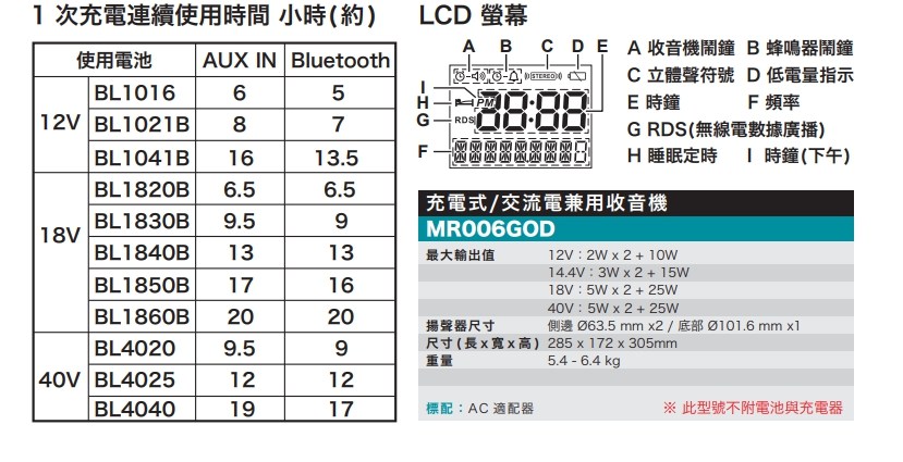 MAKITA牧田 DMR114 收音機 (交直流兩用 附110V插頭)