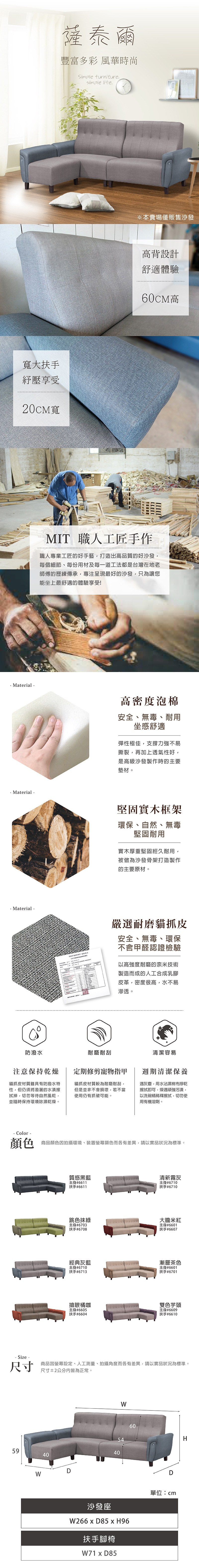 【本木】MIT台灣製 夏洛特強韌耐刮貓抓皮4人坐沙發+腳繭米色#6702+晨