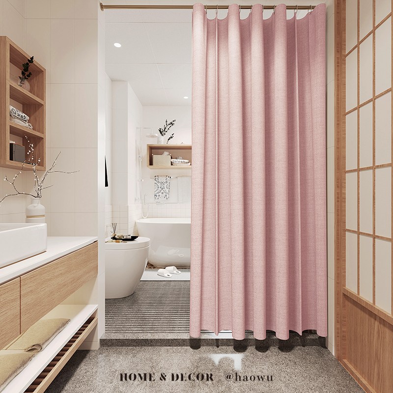 【好物良品】180x200cm_亞麻莫蘭迪色系防潑水防霉防潮加厚浴簾-暖粉色