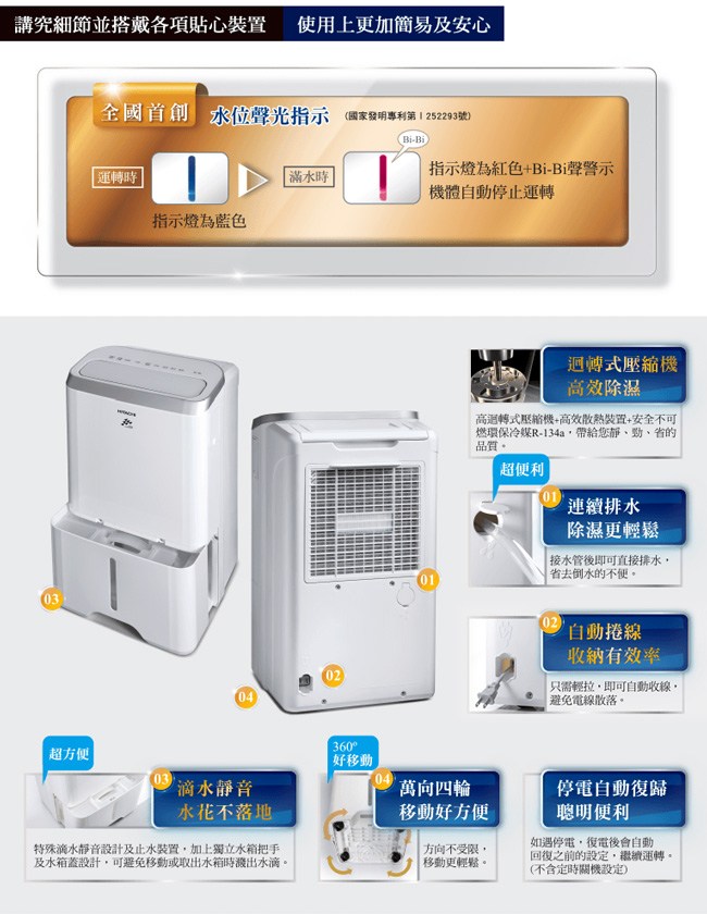 點我下載【HITACHI日立】22公升清淨除濕機(玫瑰金) RD-450HG