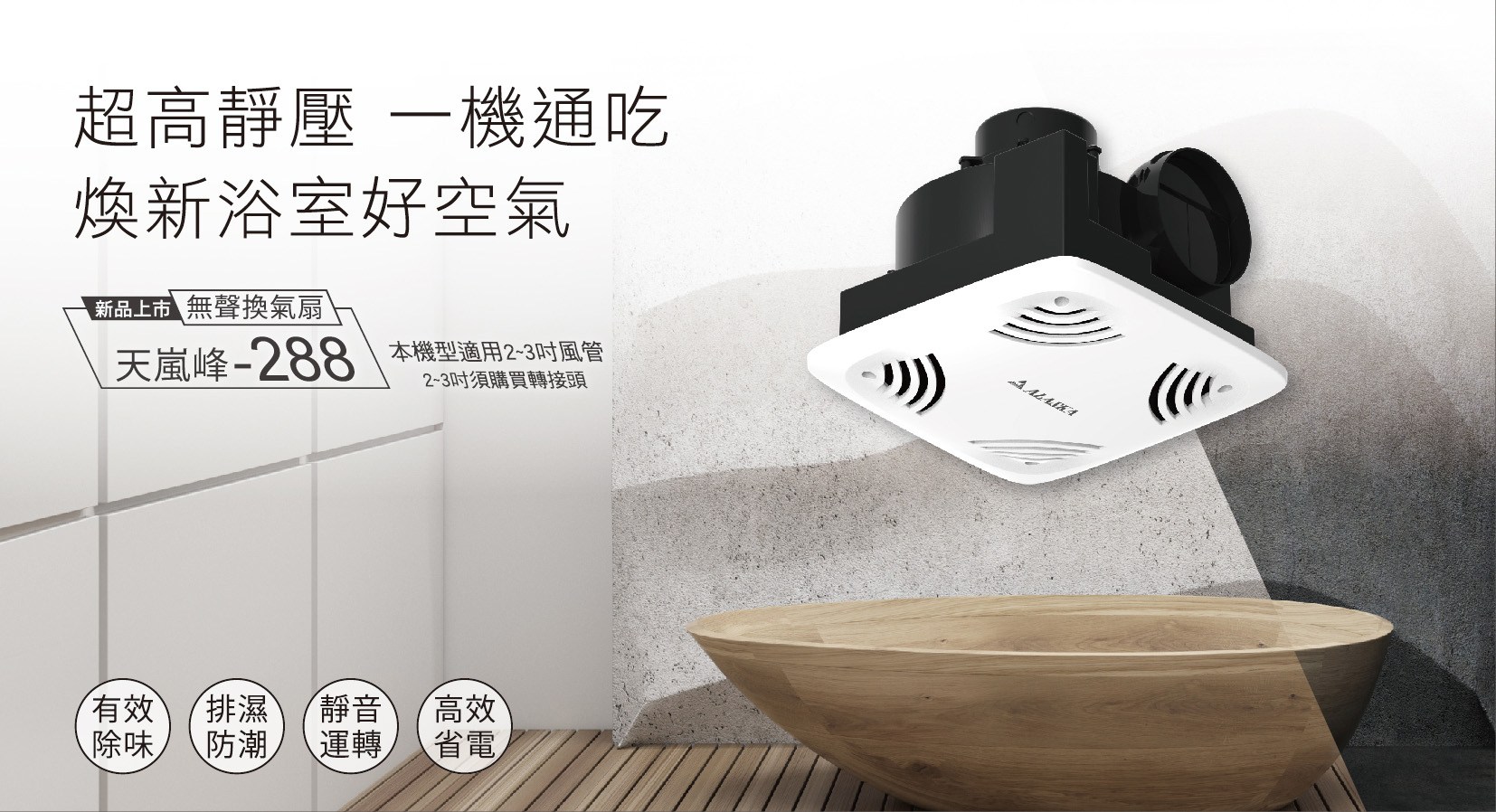 阿拉斯加無聲換氣扇風道設計,係依最佳流體力學設計,因此能順暢而有效率的換氣,噪音值 40 分貝 以下。