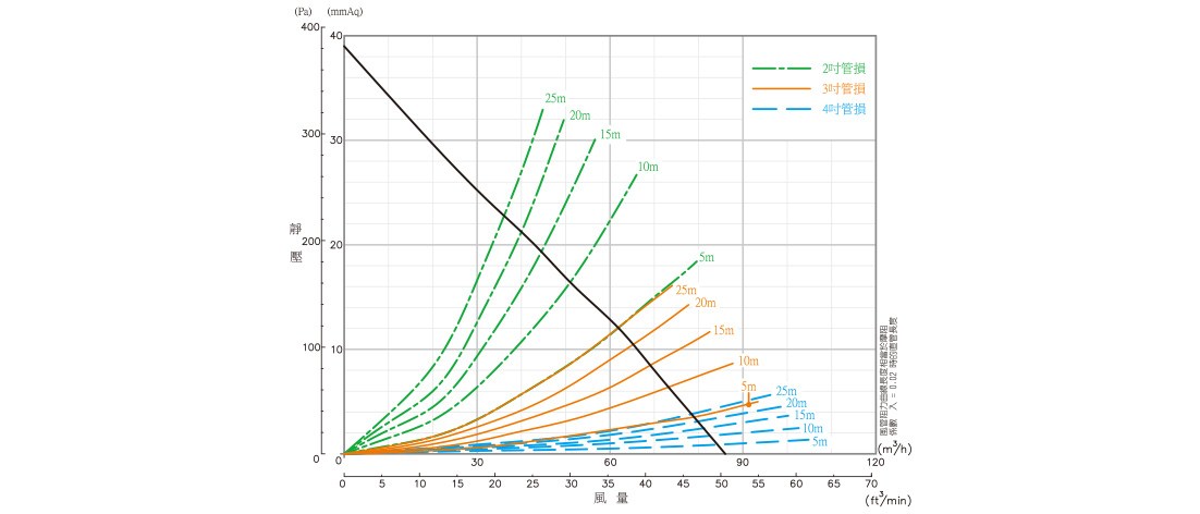 | 靜壓 (mmAq) | 39.0 | 30.5 | 24.0 | 20.0 | 16.0 | 12.0 | 8.0 | 4.0 | 0.0 |