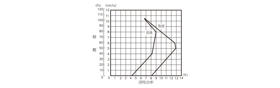 | 風量 (m3/h) | 0 | 40 | 67 | 95 | 108 | 120 | 120 | 120 | 120 |