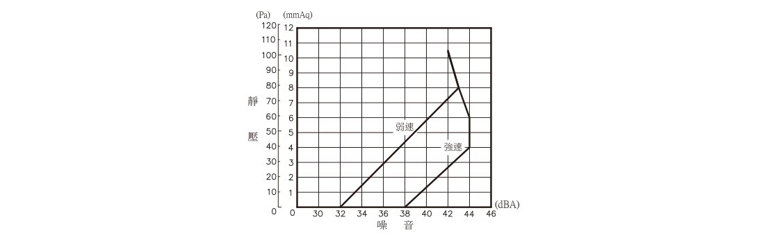 | 弱速 | 靜壓 (mmAq) | 10.4 | 9.0 | 8.0 | 7.0 | 6.0 | 5.0 | 3.0 | 2.0 | 1.0 |